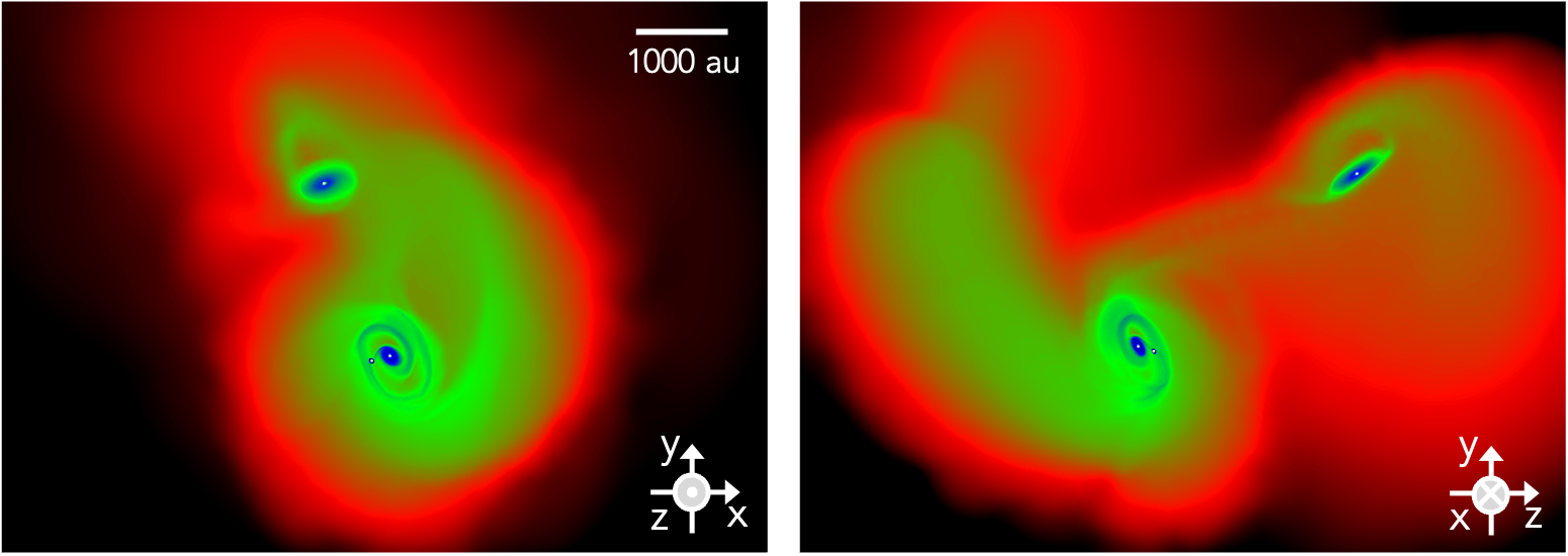 Группа астрономов во главе с Чху Ён У (Youngwoo Choi) из Сеульского национального университета сообщила об обнаружении явного приливного хвоста между молодыми протозвездными системами L1448 IRS3A и L1448 IRS3B. Оно стало возможным благодаря анализу данных наблюдений за ними системы радиотелескопов ALMA в 2016 году в линиях как пыли, так и различных молекул газа. Данные сравнивались с результатами моделирования процесса тесного сближения двух протозвезд, проведенного при помощи метода гидродинамики сглаженных частиц.