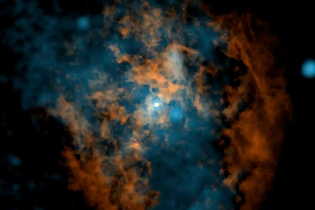 Ученые подсчитали, что общая энергия, необходимая для прохождения горячего газа через этот конус, эквивалентна энергии излучения 25 000 Солнц. Ни близлежащие звезды, ни возможные следы давних взрывов сверхновых не могли обеспечить такую энергию. Источник горячего ветра — процессы в аккреционном диске.