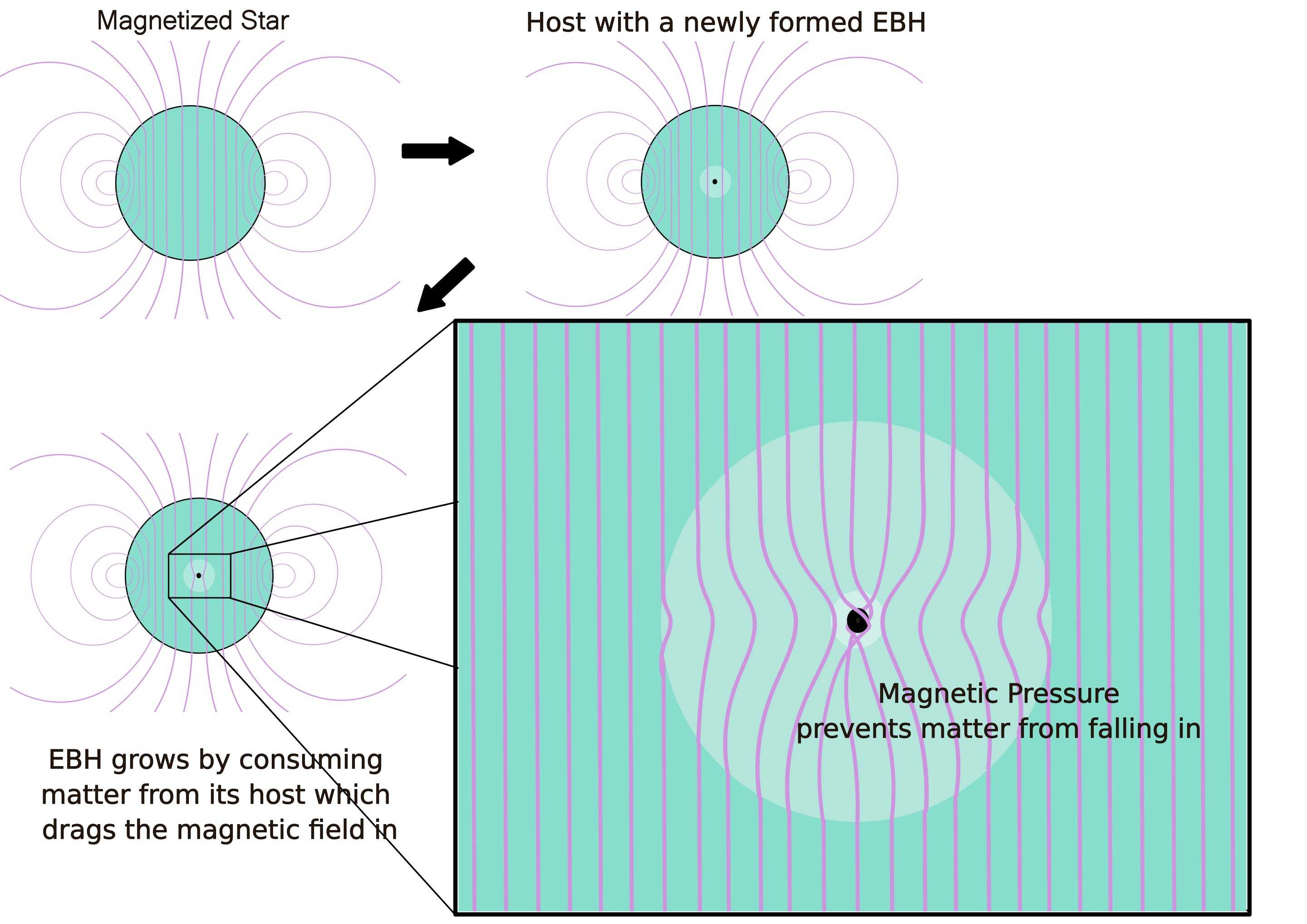 Новая научная работа, однако, предполагает неожиданный поворот в этой истории: ученые описали механизм под названием магнитно-остановленная трансмутация. Суть в том, что сильное магнитное поле внутри звезды может создавать давление, способное уравновесить притяжение растущей ЧД.