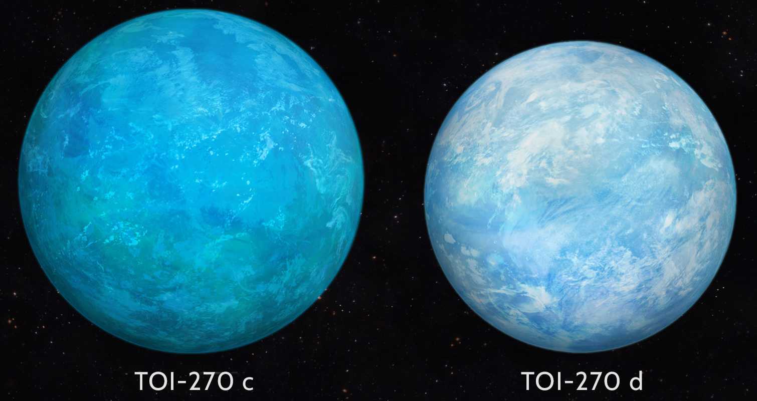 В 73 световых годах от нас, в созвездии Живописец, есть красный карлик TOI-270, вокруг которого наблюдают три экзопланеты. Все они расположены намного ближе к нему, чем Меркурий к Солнцу. При этом две из трех — субнептуны, то есть миниатюрные «копии» нашего ледяного гиганта. Такие планеты в несколько раз крупнее и массивнее Земли. Их также называют мини-нептунами и газовыми карликами.
