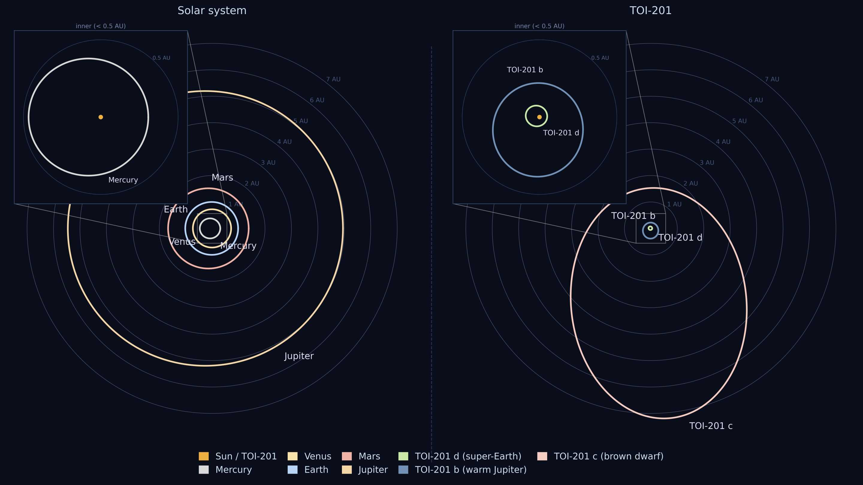Многопланетная система TOI-201 меняла конфигурацию прямо во время астрономических наблюдений. Мощная гравитация местного коричневого карлика перекосила пути движения соседних каменистой суперземли и газового гиганта. Из-за этого непрерывного сдвига орбит все три космических тела временно перестанут пролетать перед своим светилом через 200 лет.